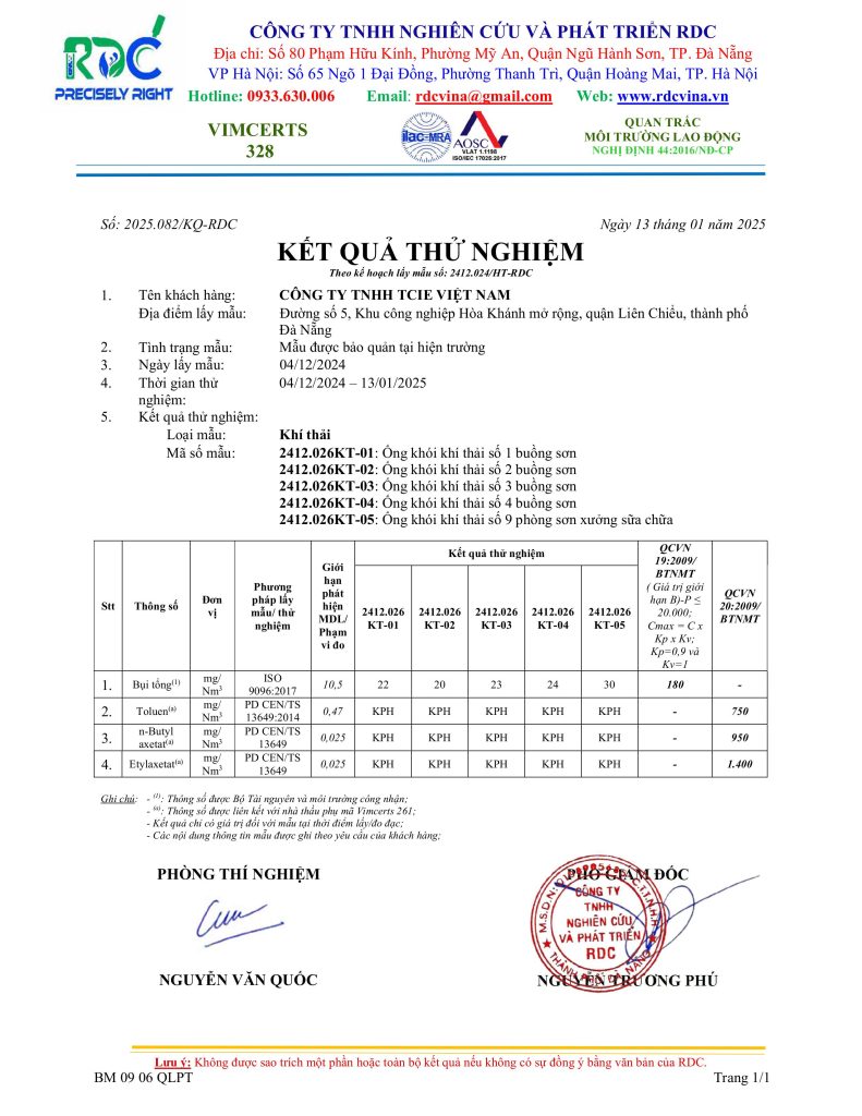 Kết quả quan trắc môi trường Q3 & Q4/ 2024