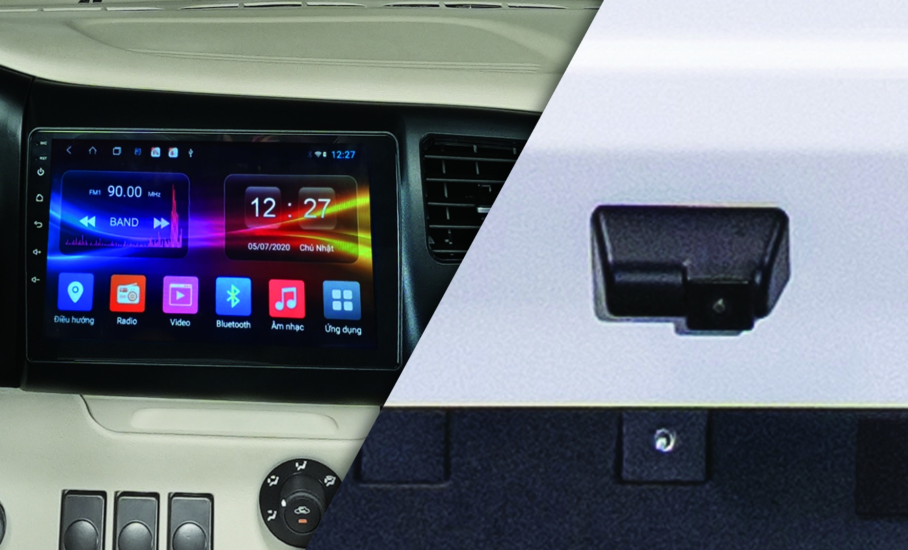 Màn hình cảm ứng 9” và Camera lùiKết nối Android Auto & Apple Car Play, cung cấp thông tin và giải trí trên xe, tích hợp camera và cảm biến lùi hỗ trợ quan sát đảm bảo an toàn