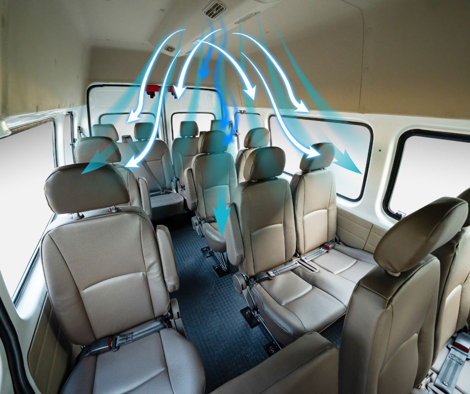 Không gian nội thất rộng rãi, thoải mái cho mọi hành kháchCửa gió trần, làm mát nhanh và đều, lối đi rộng, di chuyển dễ dàng, 10 cổng sạc USB tiện lợi cho mọi hàng ghế