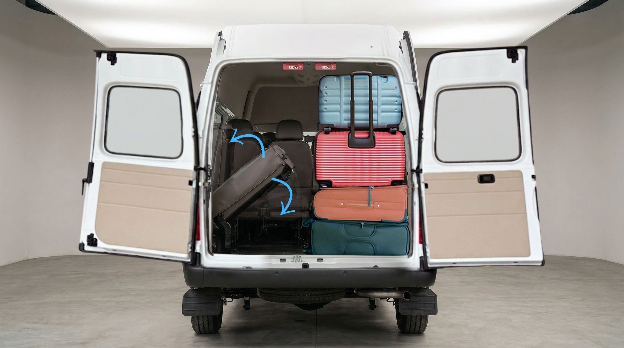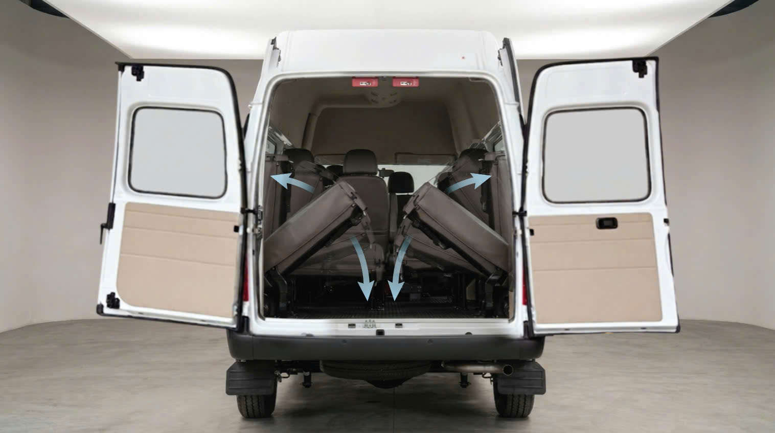 Ghế gập bướm linh hoạt, phù hợp chở hành khách, hành lý hoặc cả hai